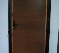 Выполнены такие двери из надежной и практичной винилискожи. Внутренняя отделка осуществляется с использованием недорого ламината. Применяются порошковый окрас или более дешевая нитроэмаль. Но надежность изделия от этого нисколько не страдает.